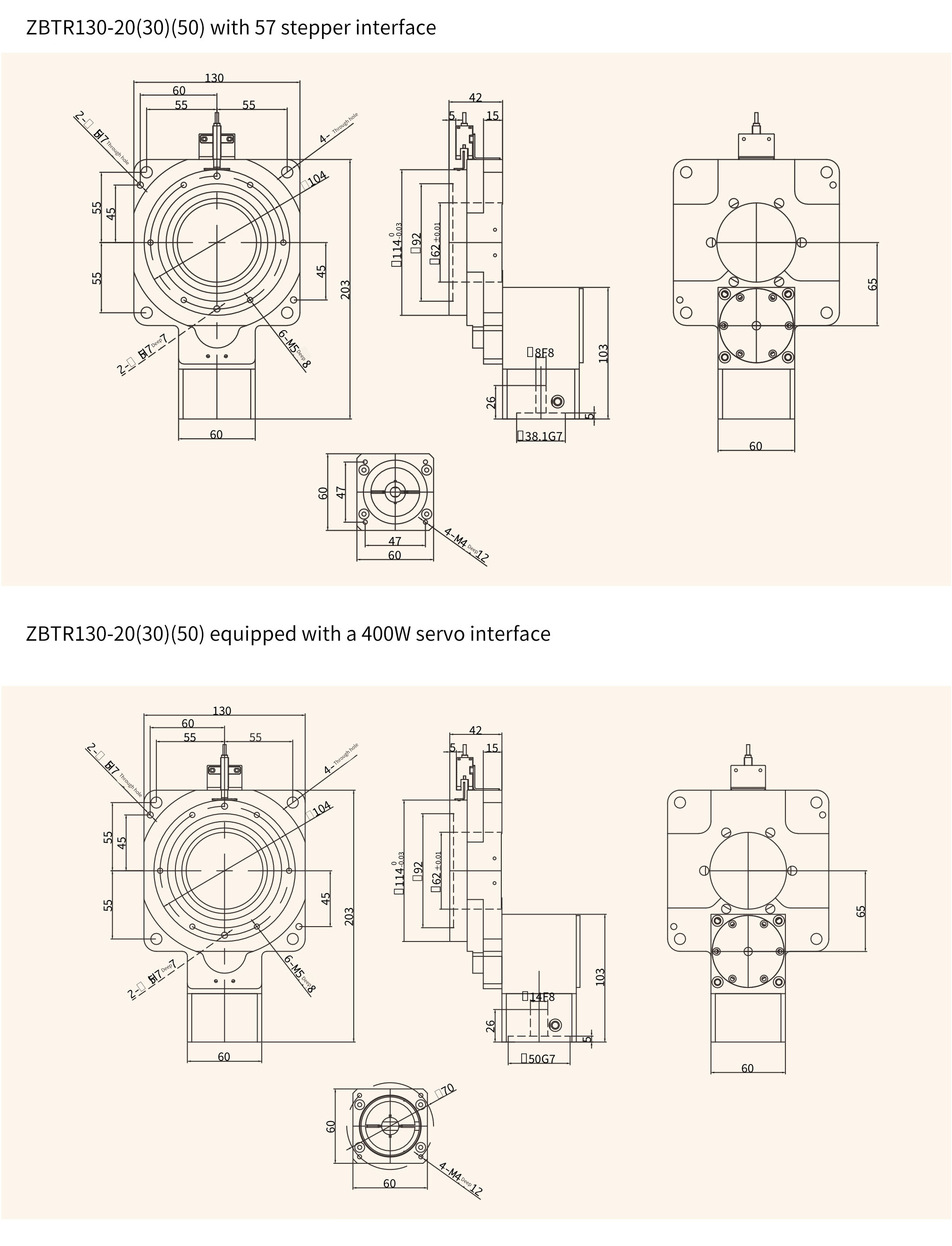 The ZBTR Integrated Right Angle Hollow Rotary Platform features excellent compatibility and can be perfectly matched with servo motors of mainstream brands, which is one of the important reasons for its great popularity in the market. As the power source of automated equipment, the performance and stability of servo motors directly affect the operation effect of the entire system. The platform supports connection with servo motors of various mainstream brands, providing users with more choices. Users can select the most suitable servo motor to match with the ZBTR Integrated Right Angle Hollow Rotary Platform according to their actual needs and budget, achieving the optimal performance combination. At the same time, it also supports precise indexing at any angle and continuous rotation, a feature that enables it to meet the diversified needs of different application scenarios. In the field of precision assembly, precise angular positioning and assembly of components are required. The ZBTR Integrated Right Angle Hollow Rotary Platform can achieve precise indexing at any angle according to the requirements of the assembly process, ensuring the accurate assembly of components and improving assembly quality and efficiency. In multi-station turntable machines, continuous rotation of the turntable and precise positioning of each station are required. The continuous rotation and precise indexing functions of the platform can perfectly meet this demand, realizing efficient collaborative work of multiple stations and improving the overall production capacity of the production line. Whether in high-end automation scenarios such as visual inspection, precision assembly or multi-station turntable machines, the ZBTR Integrated Right Angle Hollow Rotary Platform can become the ideal choice for users with its wide compatibility and outstanding performance.