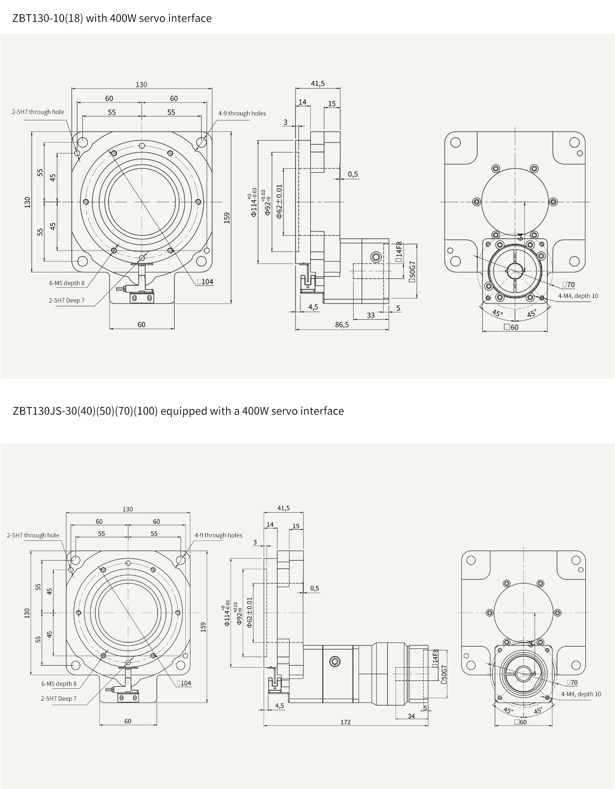 The Zhuochuang Elite ZBT Series utilizes high-quality aluminum alloy material for its housing. This design provides reliable protection for the stable operation of the 400W Servo Motor Hollow Rotary Platform . Aluminum alloy offers advantages such as light weight, high strength, and corrosion resistance, ensuring the structural robustness of the hollow rotary platform while reducing its own weight for easier installation and handling.