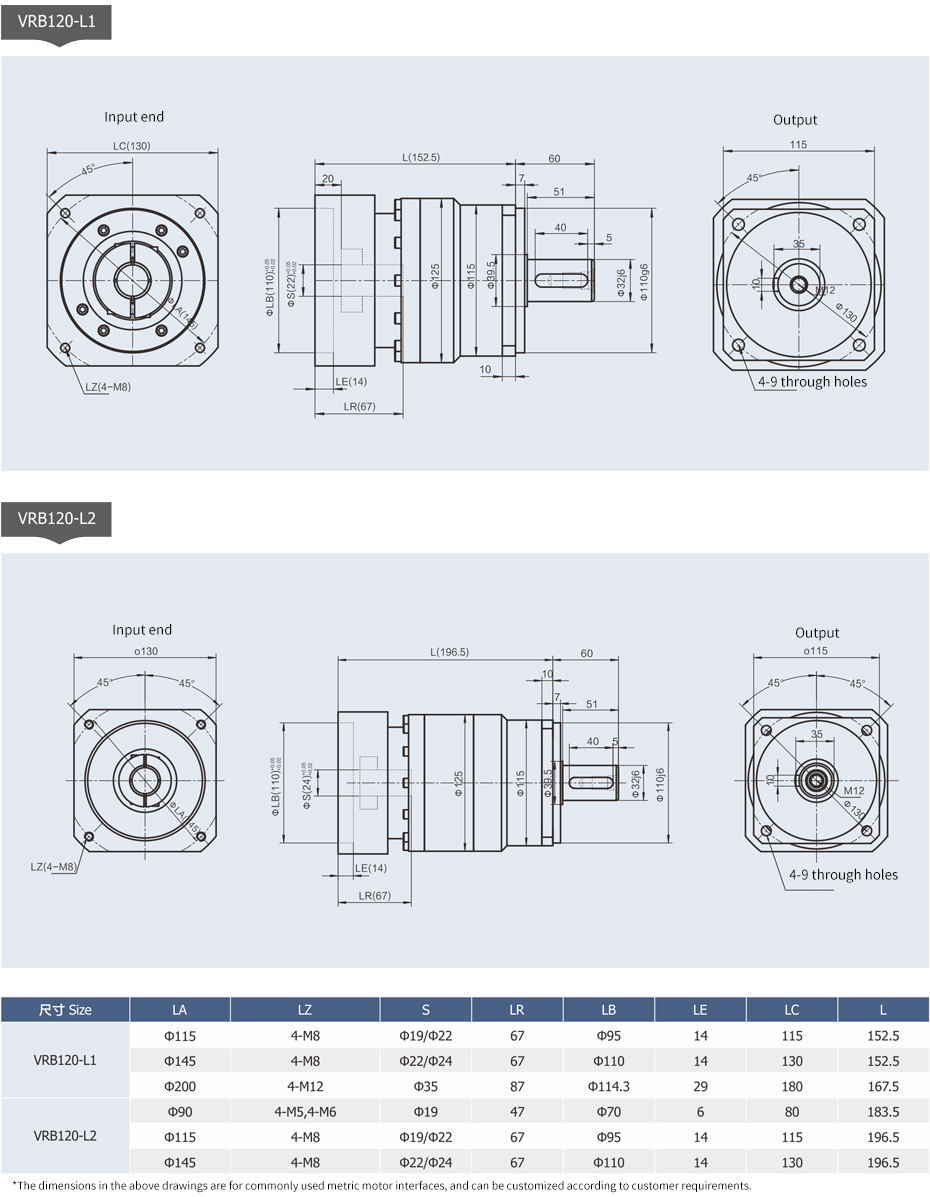 As an important member of the VRB series, the 130 Frame Precision Planetary Gearbox also delivers remarkable compatibility. It achieves perfect adaptation with mainstream servo motors, and the combination of the two is a perfect match. Under the high-precision control of servo motors, the 130 Frame Precision Planetary Gearbox can easily realize indexing motion with high repeat precision and continuous rotary output. It provides precise power support for the flexible rotation of robot joints, enabling robots to complete various complex and delicate movements; on precision turntables, it ensures accurate positioning and stable rotation, offering a reliable guarantee for high-precision machining and measurement; on angle adjustment devices in automated production lines, it can precisely control angular changes, improving production efficiency and product quality.